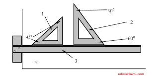 Untuk menghasilkan garis yang tegak lurus maka dalam menggunakan dua penggaris segitiga. Untuk penggunaan bisa diamati pada gambar dibawah ini.